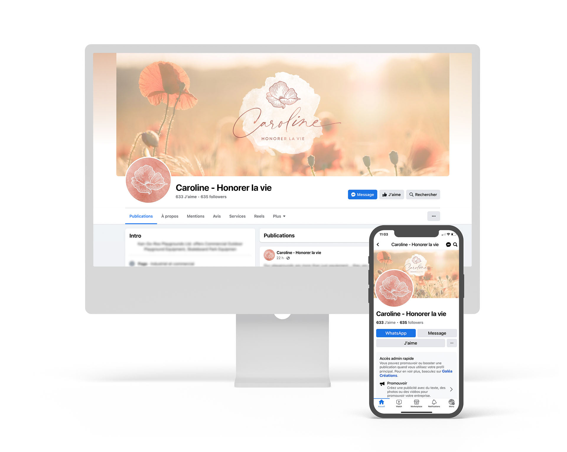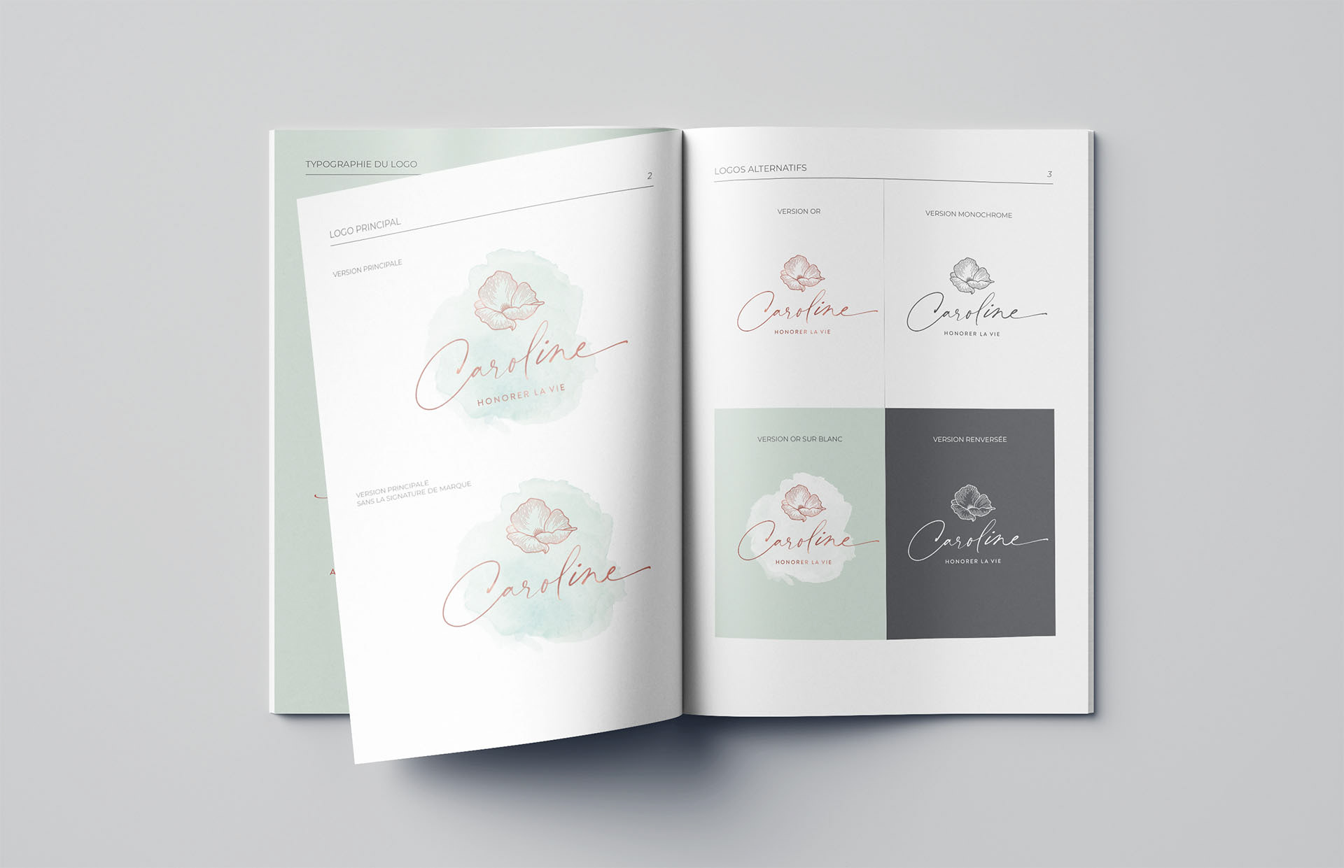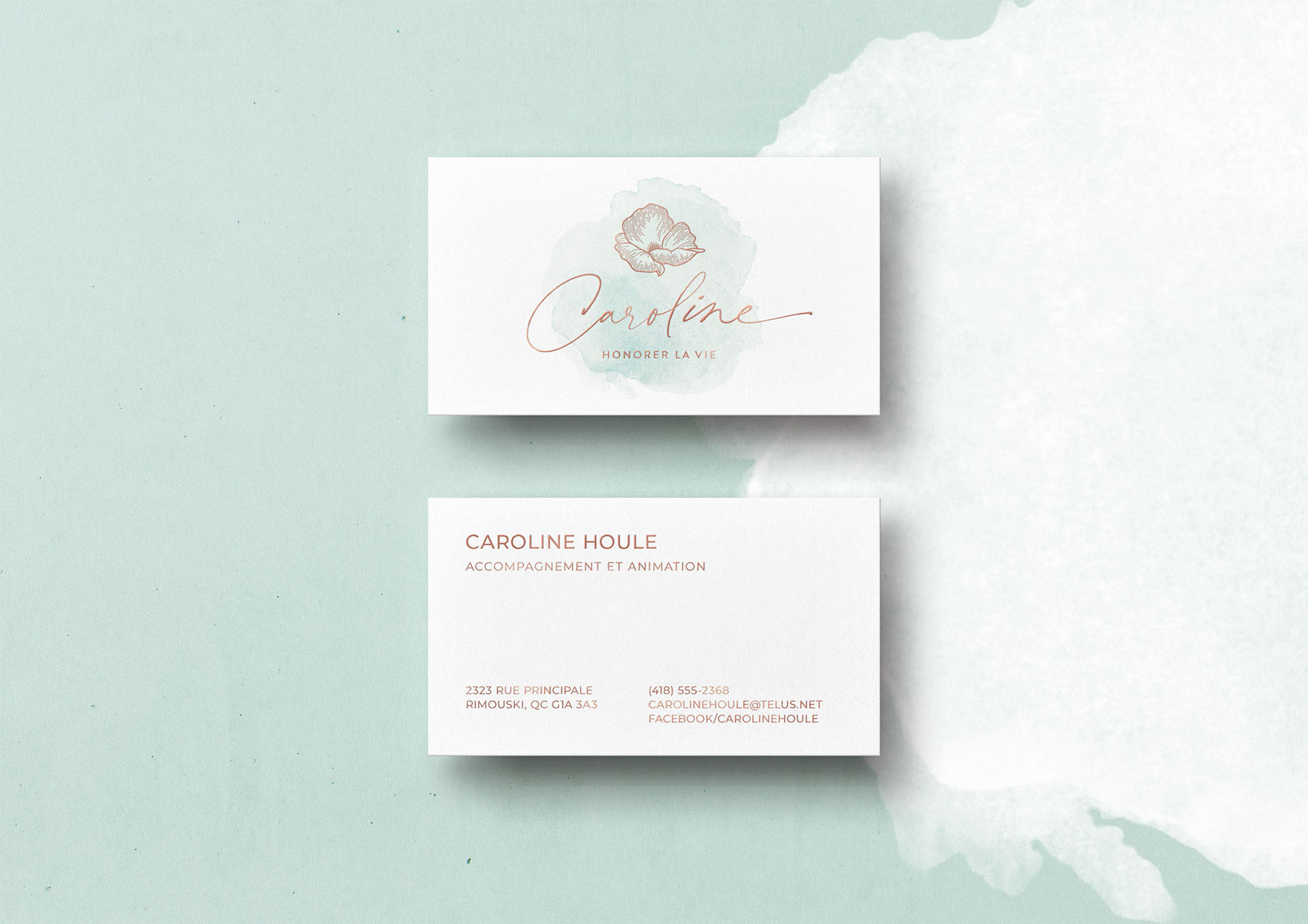 Caroline Houle est coach d'affaires et de développement personnel. Animatrice d'activités corporatives (team-building, conférences) et de commémorations, elle souhaitait avoir une identité visuelle douce et vibrante, comme sa voix.